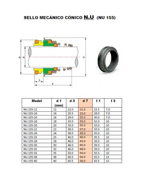 Sello Mecánico 155 Cónico NU
