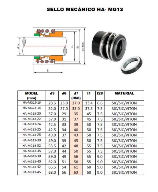 Sello Mecánico, Rotatoria y Estacionaria en distintos materiales y medidas.
